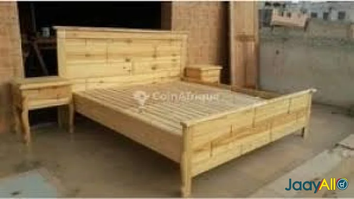 Vends Double lit en bois sapin de 3 places tres propre et tres joli en excellent etat. NB:Seulement le double lit qui est à vendre et sans les deux comodes de tete de lit