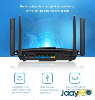 Vends super puissant Routeur Sans-fil intelligent MU-MIMO AC2600 Mbps Max-Stream™ EA8500 Linksys. Le routeur Linksys AC2600 Max-Stream fournit une grande bande passante à tous vos appareils connectés tels que les lecteurs multimédias en continu, les téléviseurs intelligents, les tablettes et les consoles de jeux vidéo, afin de maintenir une connexion sans fil rapide et sans interruption même si plusieurs membres de la famille se connectent tous en même temps. Tous les membres de votre foyer peuvent désormais se connecter sur Internet simultanément sans ralentir votre réseau. Porté wifi +1km Profitez de la toute dernière innovation en sans-fil AC, avec la technologie innovante MU-MIMO. 4,6 x plus rapide que le sans-fil traditionnel. Processeur bicœur 1,4 GHz Le sans-fil AC 4x4 transmet quatre flux de données 4 antennes ajustables de 12dBi chacun